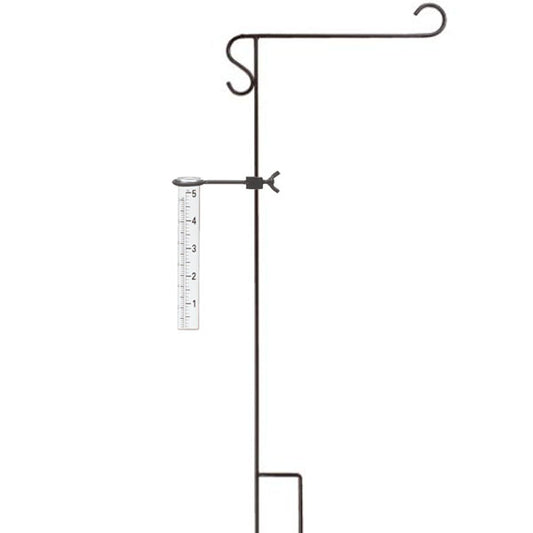 RAIN GAUGE, Wrought Iron & Glass Gauge for Garden Flag Stands & Yard Stakes