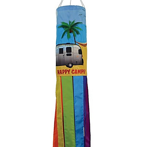 The Beach Camper Applique Windsock features bright, fun colors and detailed appliqued graphics with embroidered accents. The windsock’s color coordinating tails flutter whimsically in the breeze.