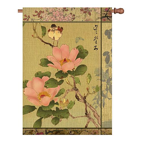 PEONY AND BIRD Standard Size Floral Flag