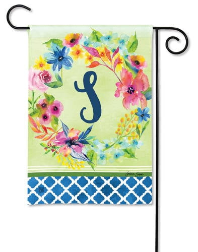 S Fresh and Pretty Floral Monogram "S" Decorative Flag - Garden 12.5" x 18"