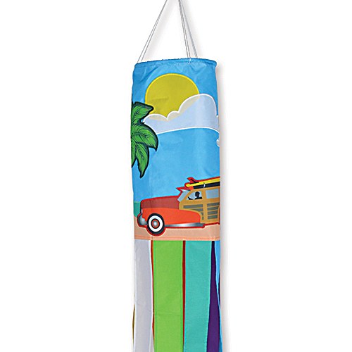 Experience the perfect summer beach atmosphere with our WOODIES Windsock. Featuring a classic station wagon transporting a surfboard, this traditional windsock boasts embroidered accents and matching streamers that sway in the wind. Windsock hangers and deck hooks can be found in our Hardware section.