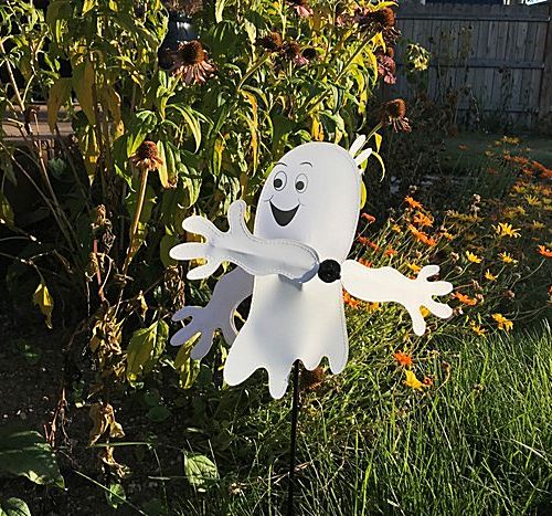 The Baby Ghost whirligig spinner will bring smiles to your yard this Halloween! Great for small gardens and outdoor space or a planter or flower pot. Its' whimsical design will draw attention and low price makes it a great choice!