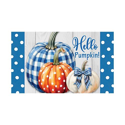 Welcome guests with a delightful fall-themed doormat featuring a gingham pumpkin stack design. This versatile doormat is perfect for both indoor and outdoor use, adding a touch of seasonal charm to any entryway. Enhance your autumn decor with this stylish and functional piece. Discover the perfect blend of style and practicality today!
