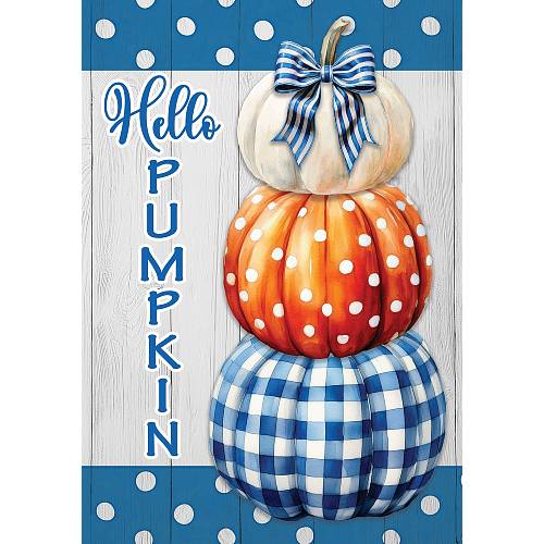 Transform your house this fall with a delightful Gingham Pumpkin Stack flag. This charming flag is perfect for adding a cozy, autumnal touch to your outdoor decor. Featuring a classic gingham pattern and a stack of pumpkins, it's an ideal choice for seasonal decoration. Celebrate the beauty of autumn with this stylish and inviting fall flag.